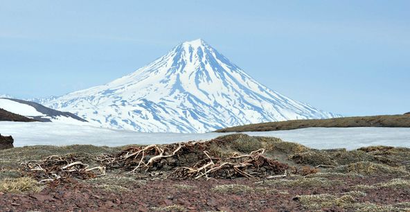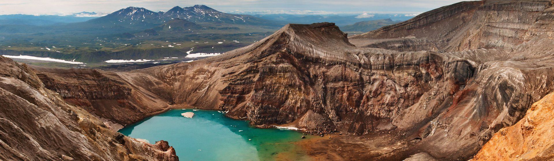 Mountain range Vachkazhets is an ancient volcano that was destroyed thousands years ago by violent eruptions. Since then, the slopes of the mountain turned into a mountain circus, whose peaks are always covered with snow. In one of them there is glacial lake Tahkoloch, from where the river of the same name originates.