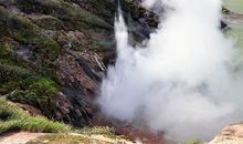 Переезд до базового лагеря и обратно — на специально подготовленных внедорожных автомобилях. На подъезде к Авачинскому вулкану преодолеваем Сухую речку.